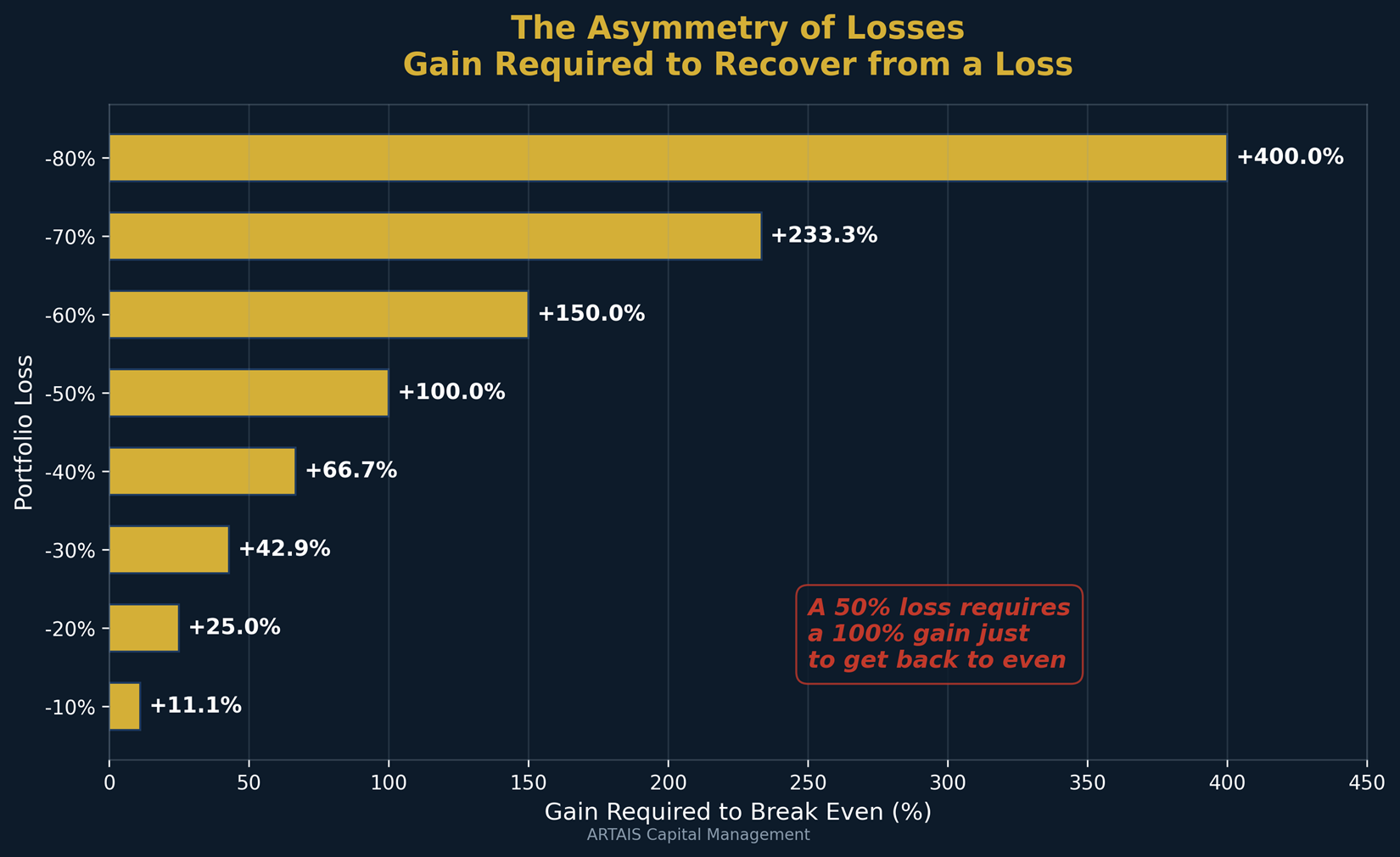 A portfolio that drops 50% needs a 100% gain just to get back to where it started. A 33% loss requires a 50% gain to recover.